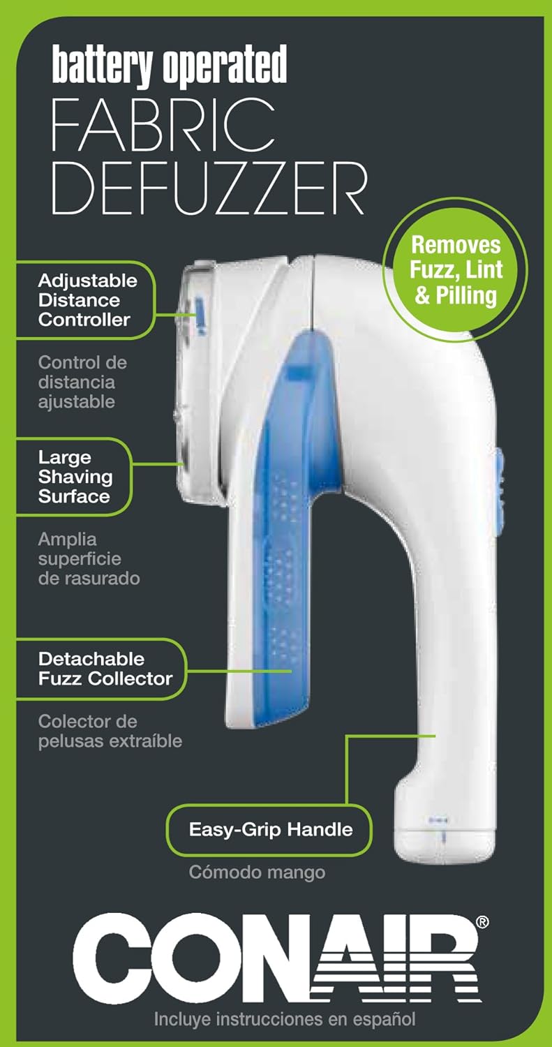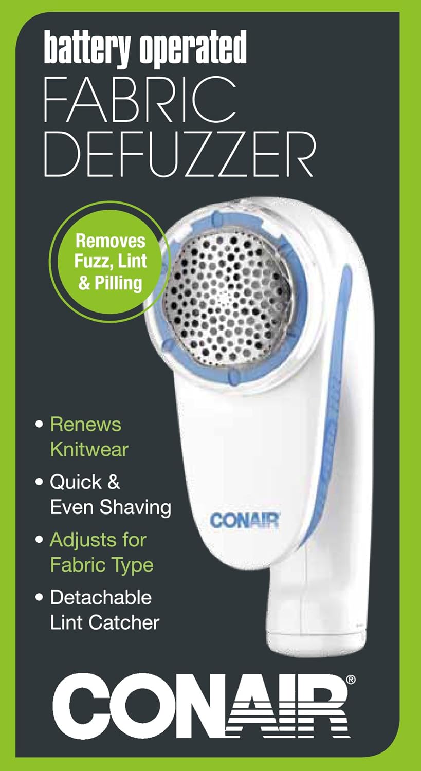 Keep all your clothes and fabrics looking like new with the conair fabric shaver. It safely removes pills and fuzz foam all fabrics with an adjustable distance control to suit different fabric surfaces. With a large shaving head of about 1-7/8-inch, it finishes the job quickly. Plus the detachable collection compartment makes emptying easy.
